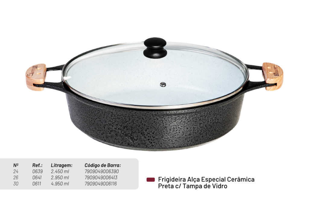 A cerâmica de alta qualidade proporciona uma distribuição de calor uniforme, garantindo que seus pratos sejam cozidos perfeitamente. Além disso, as Panelas de Cerâmica são naturalmente antiaderentes, facilitando a preparação dos seus pratos favoritos sem a necessidade de excesso de óleo.